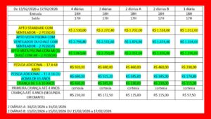 1 – PERÍODO DESTA TABELA: carnaval 2026 – 13/02/2026 a 17/02/2026 – NÃO VAI TER FESTA