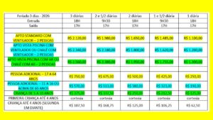 1 – PERÍODO DESTA TABELA: Feriados 3 dias (quando o feriado cai na segunda ou sexta) 2026 – NÃO VAI TER FESTA